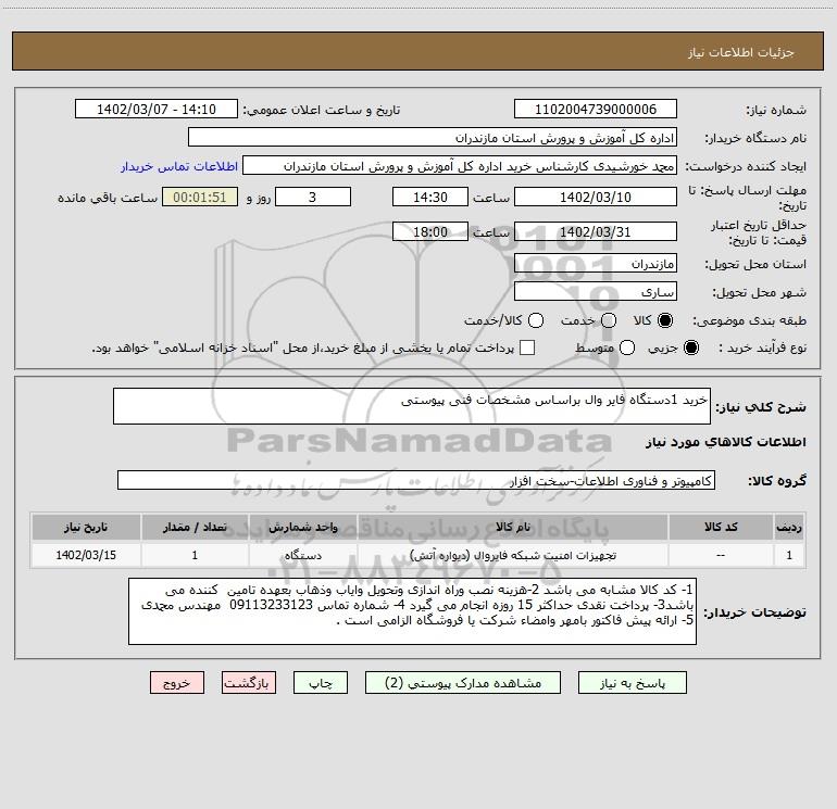شرح کلی نیاز: خرید 1دستگاه فایر وال براساس مشخصات فنی پیوستی