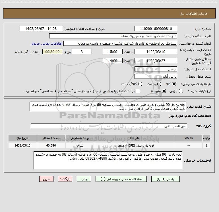 نام دستگاه خریدار:شرکت کشت و صنعت و دامپروری مغان