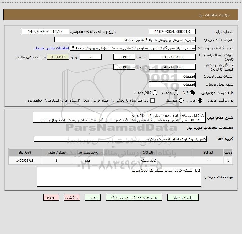 شرح کلی نیاز: کابل شبکه cat5 بدون شیلد پک 100 متری
