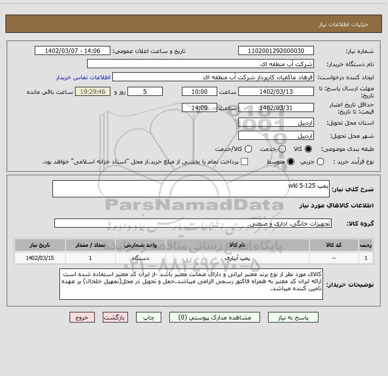 شرح کلی نیاز: پمپ wkl 5-125