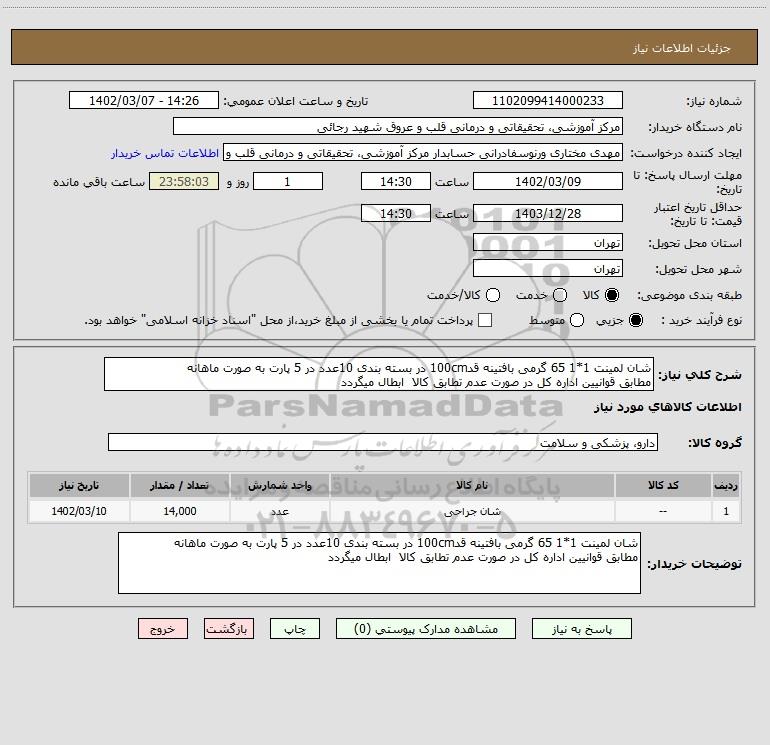 نام دستگاه خریدار:مرکز آموزشی، تحقیقاتی و درمانی قلب و عروق شهید رجائی