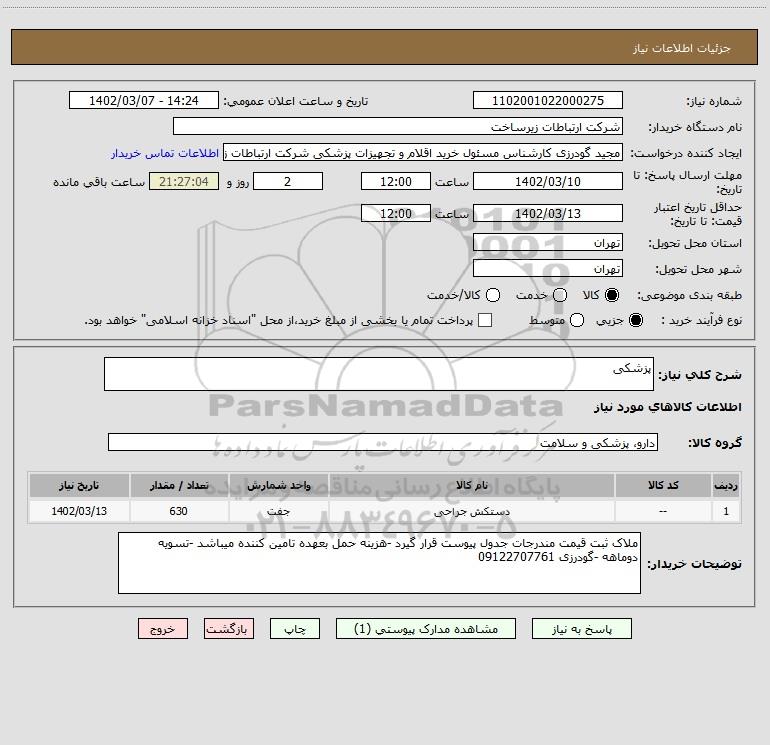 نام دستگاه خریدار:شرکت ارتباطات زیرساخت