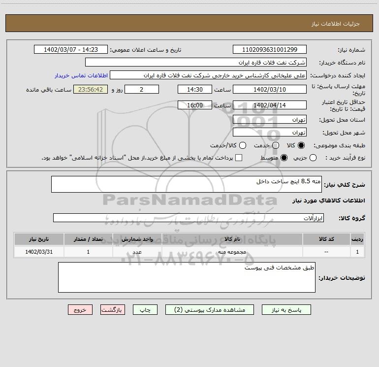 شرح کلی نیاز: مته 8.5 اینچ ساخت داخل