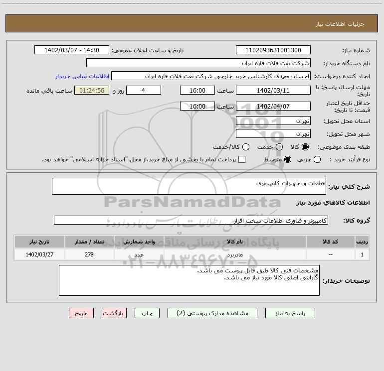 شرح کلی نیاز: قطعات و تجهیزات کامپیوتری