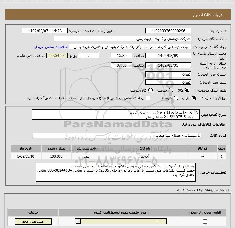 نام دستگاه خریدار:شرکت پژوهش و فناوری پتروشیمی