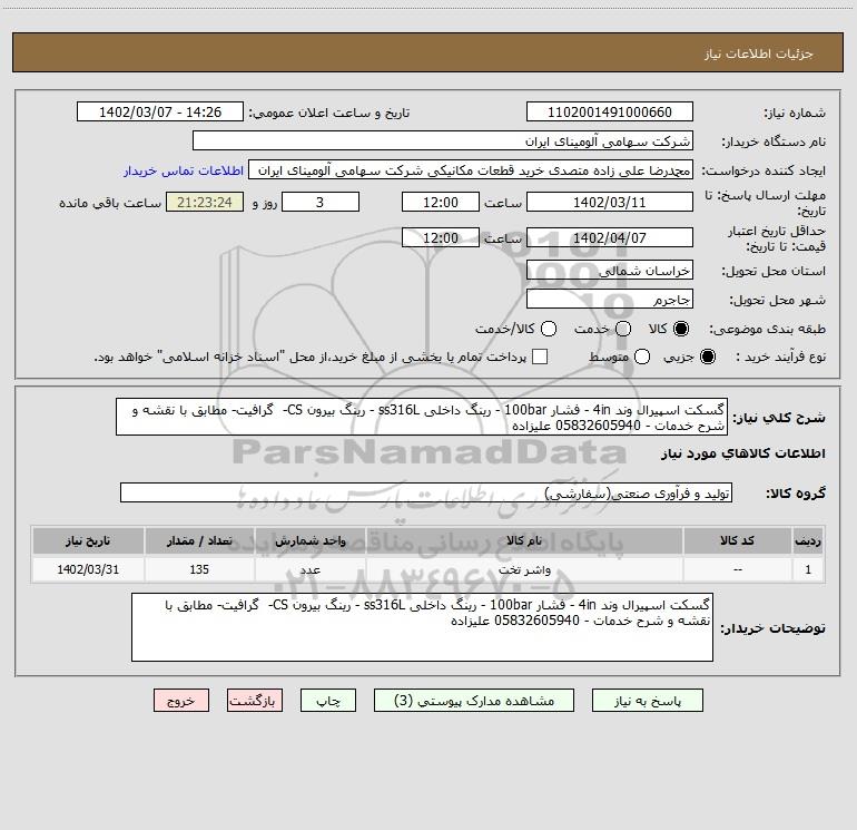نام دستگاه خریدار:شرکت سهامی آلومینای ایران