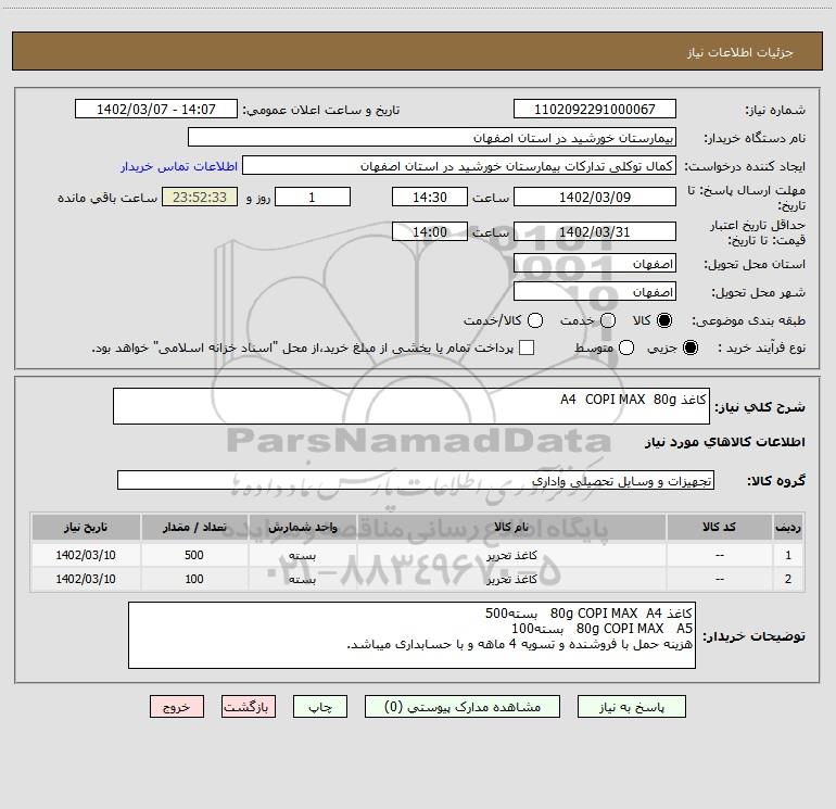 شرح کلی نیاز: کاغذ A4 COPI MAX 80g