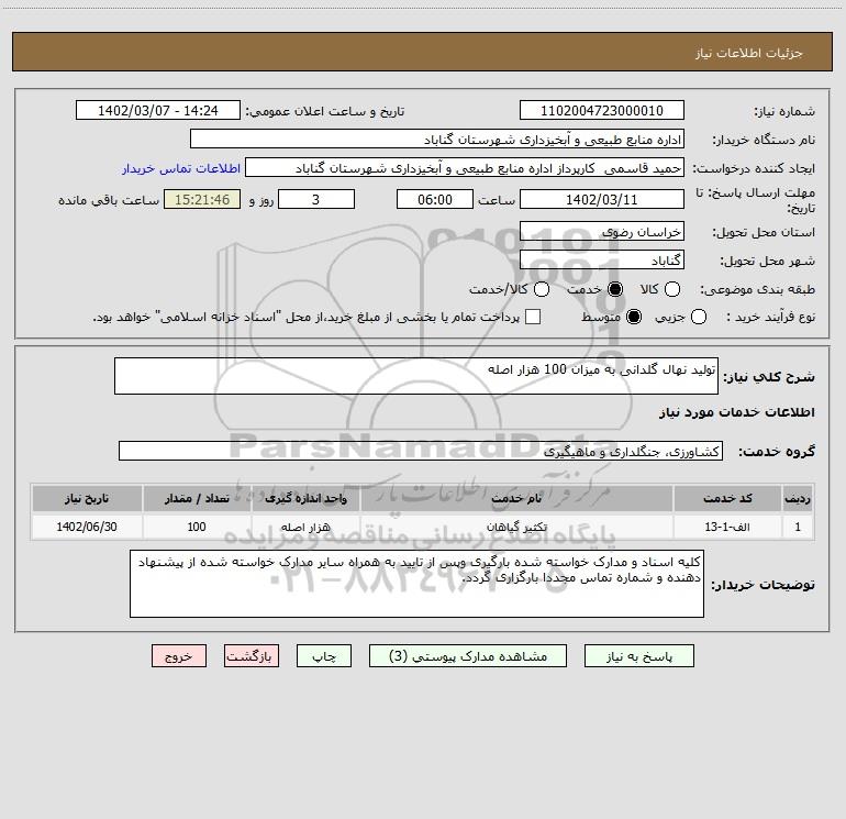 نام دستگاه خریدار:اداره منابع طبیعی و آبخیزداری شهرستان گناباد
