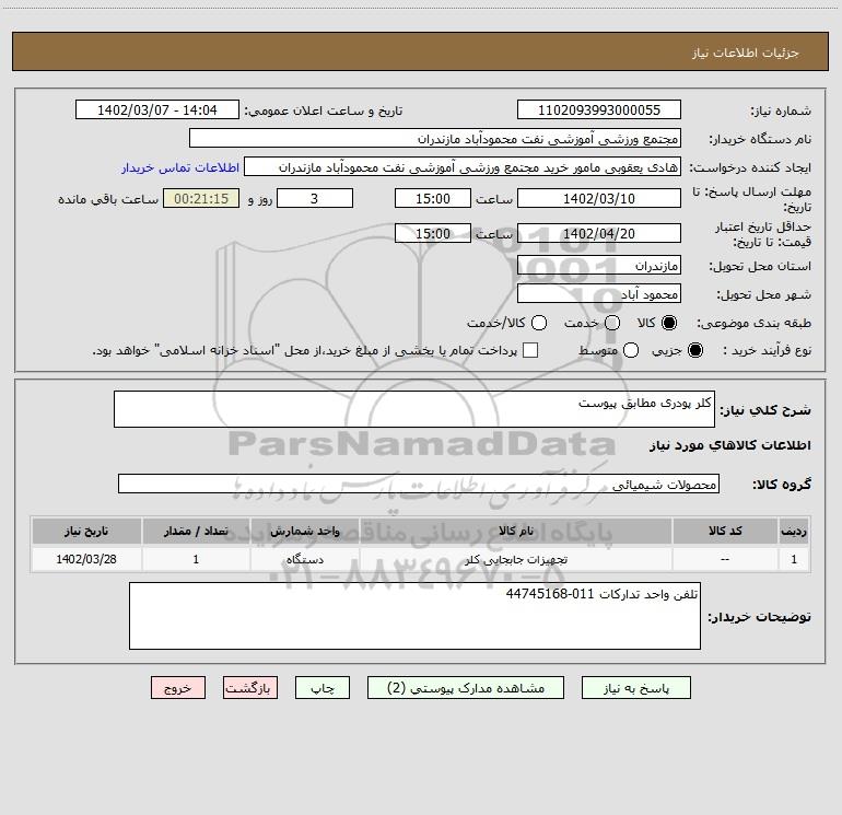 نام دستگاه خریدار:مجتمع ورزشی آموزشی نفت محمودآباد مازندران
