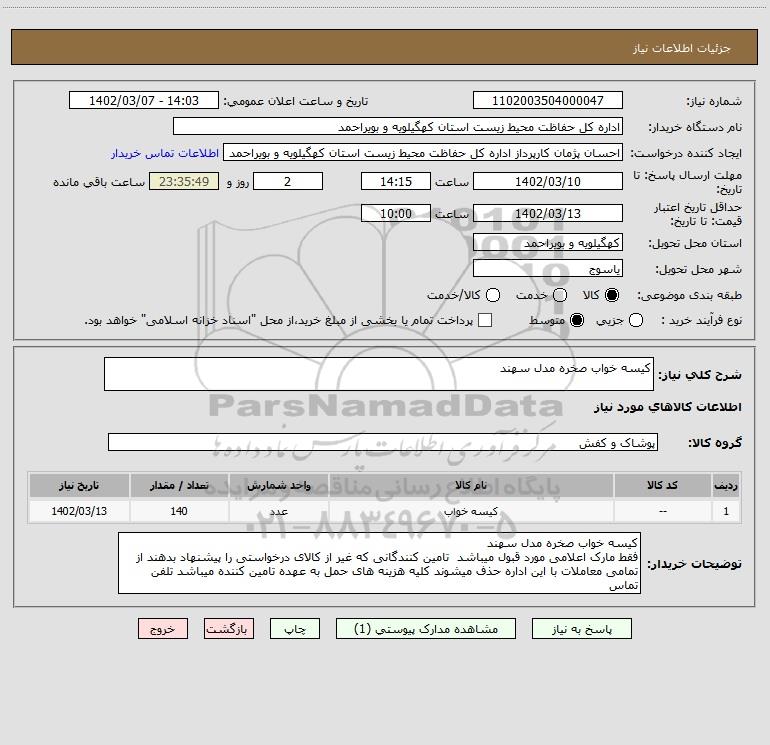 نام دستگاه خریدار:اداره کل حفاظت محیط زیست استان کهگیلویه و بویراحمد