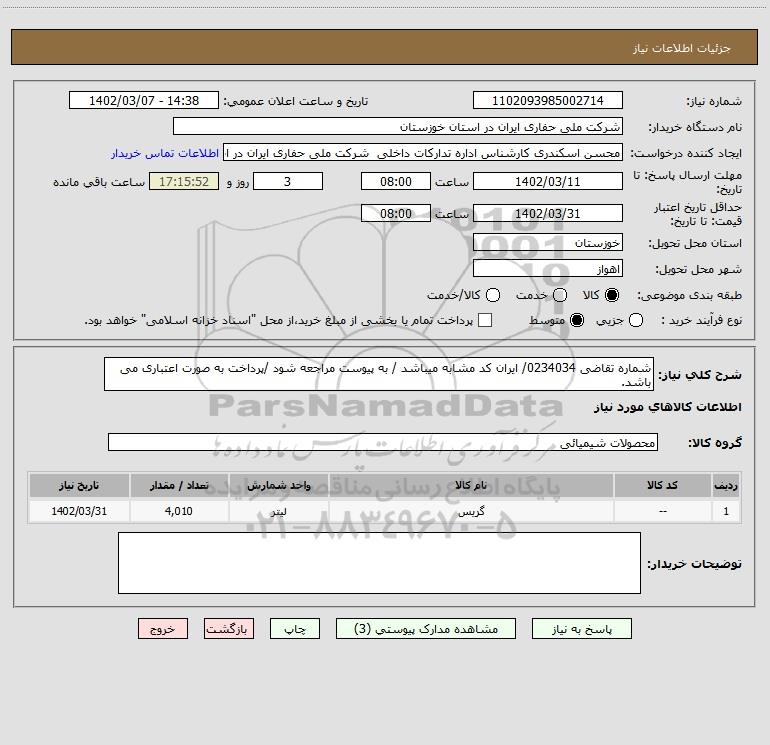 استعلام شماره تقاضی 0234034/ ایران کد مشابه میباشد / به پیوست مراجعه شود /پرداخت به صورت اعتباری می باشد., استعلام شماره تقاضی 0234034/ ایران کد مشابه میباشد / به پیوست مراجعه شود /پرداخت به صورت اعتباری می باشد.