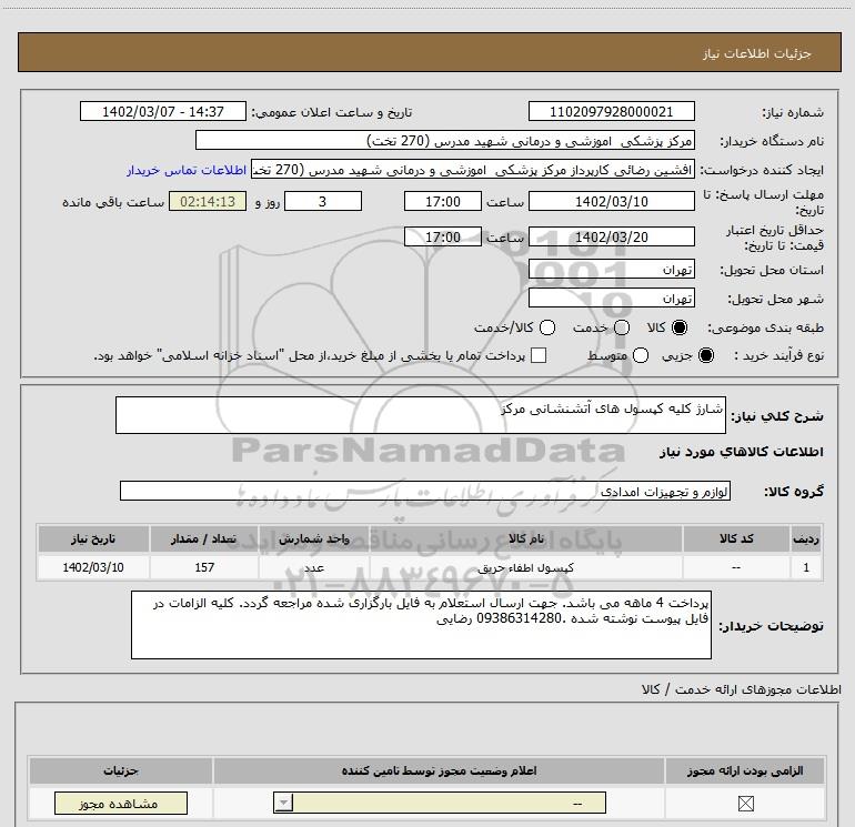 | 1 | -- | کپسول اطفاء حریق | عدد | 157 | 1402/03/10 |