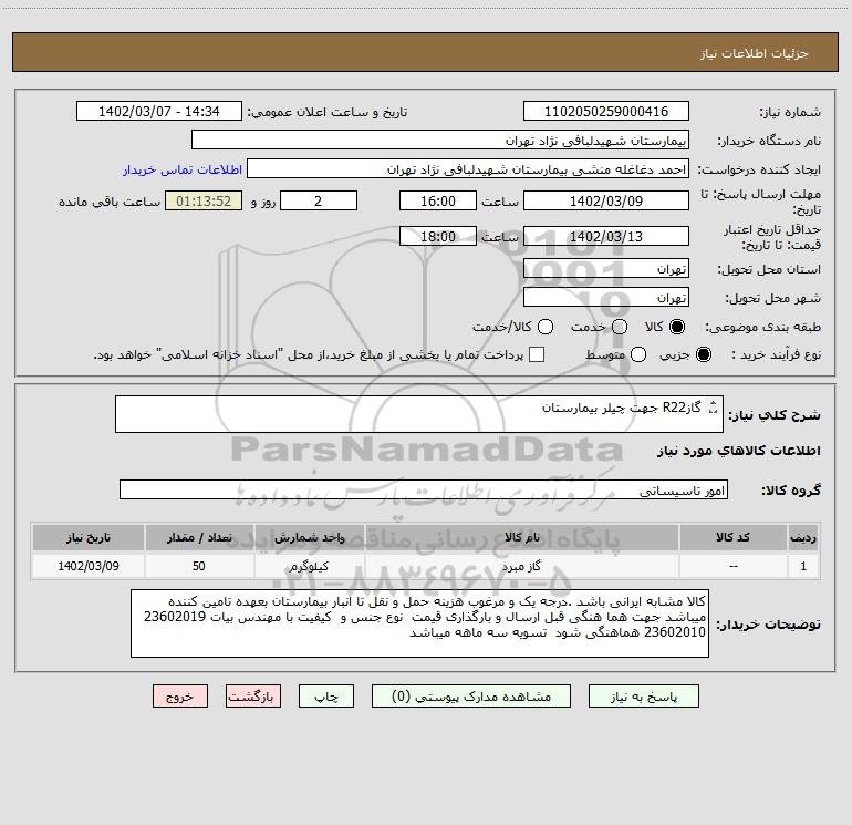 شرح کلی نیاز: گازR22 جهت چیلر بیمارستان