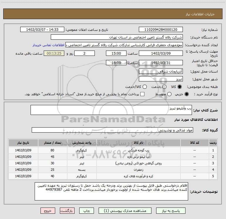 شرح کلی نیاز: رب وآبلیمو تبریز