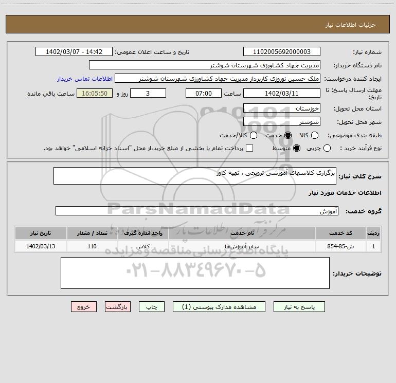 نام دستگاه خریدار:مدیریت جهاد کشاورزی شهرستان شوشتر