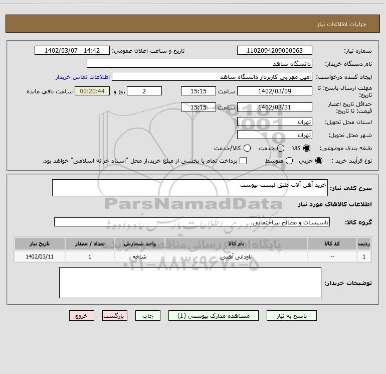 شرح کلی نیاز: خرید آهن آلات طبق لیست پیوست