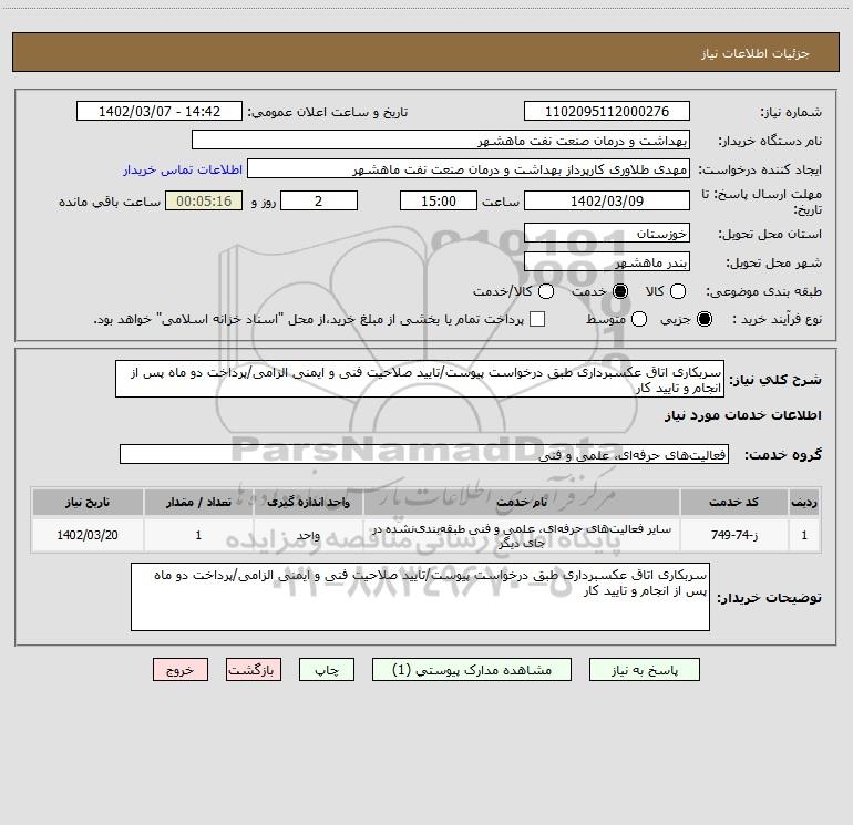 نام دستگاه خریدار:بهداشت و درمان صنعت نفت ماهشهر