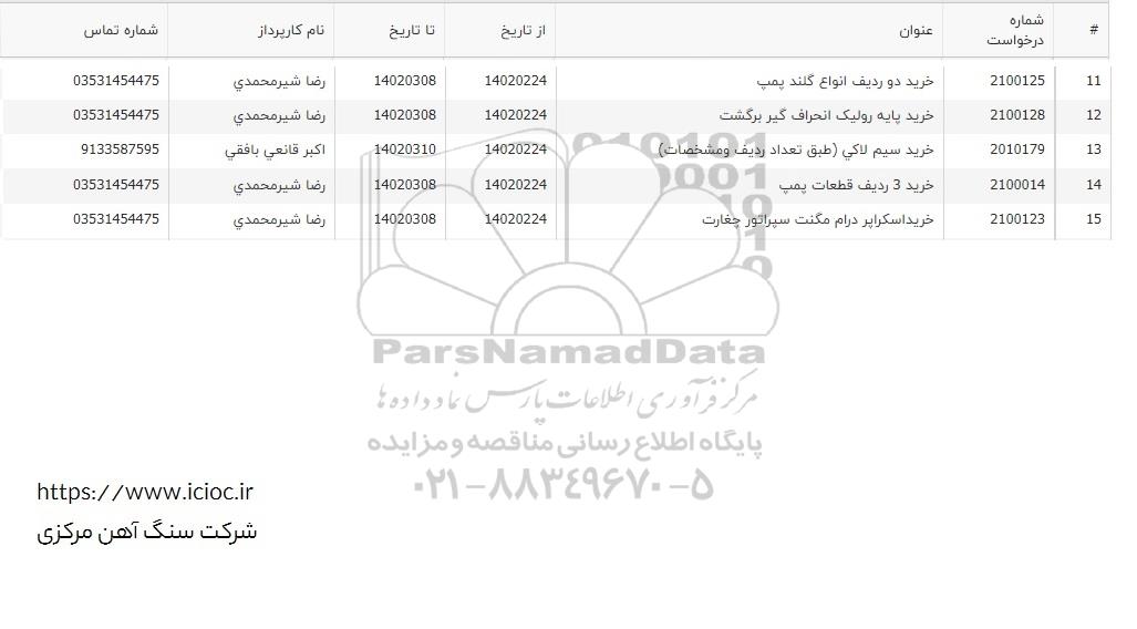 | شماره درخواست | عنوان | از تاریخ | تا تاریخ | نام کارپرداز | شماره تماس |
