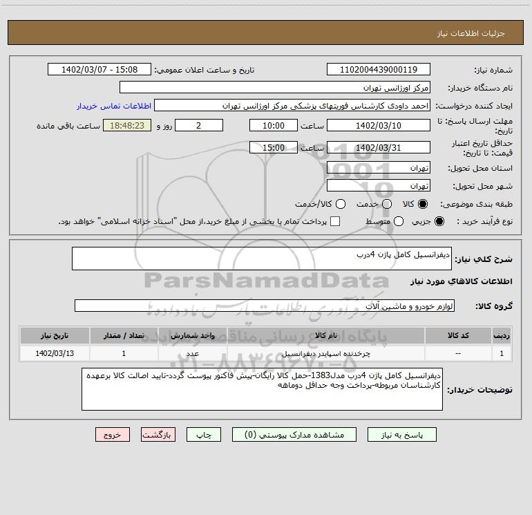 شرح کلی نیاز: دیفرانسیل کامل پاژن 4درب