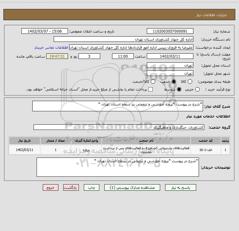 توضیحات خریدار:*شرح در پیوست *پروژه آموزشی و ترویجی در سطح استان تهران *