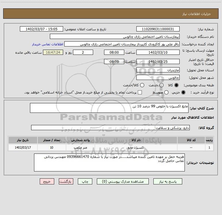 | 1 | -- | اکسیژن مایع | متر مکعب | 10 | 1402/03/17 |