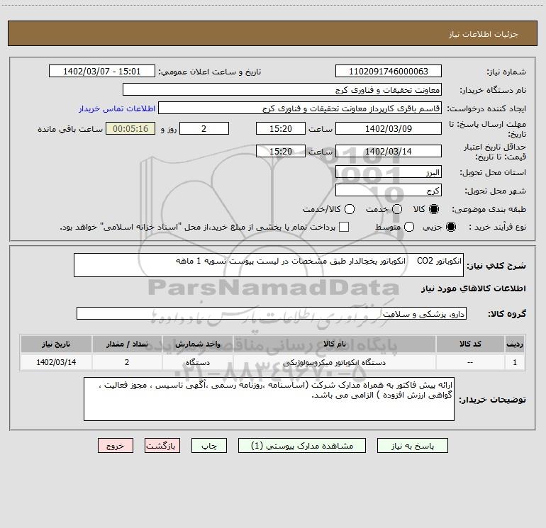 نام دستگاه خریدار:معاونت تحقیقات و فناوری کرج