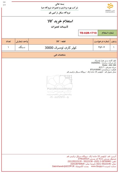 نام تحویل: قم، کیلومتر 15 جاده اراک، نیروگاه سیکل ترکیبی قم
