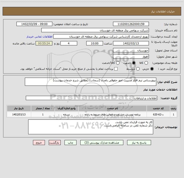 شرح کلی نیاز: بروزرسانی نرم افزار مدیریت امور حقوقی بامداد (سحاب) (مطابق شرح خدمات پیوست)