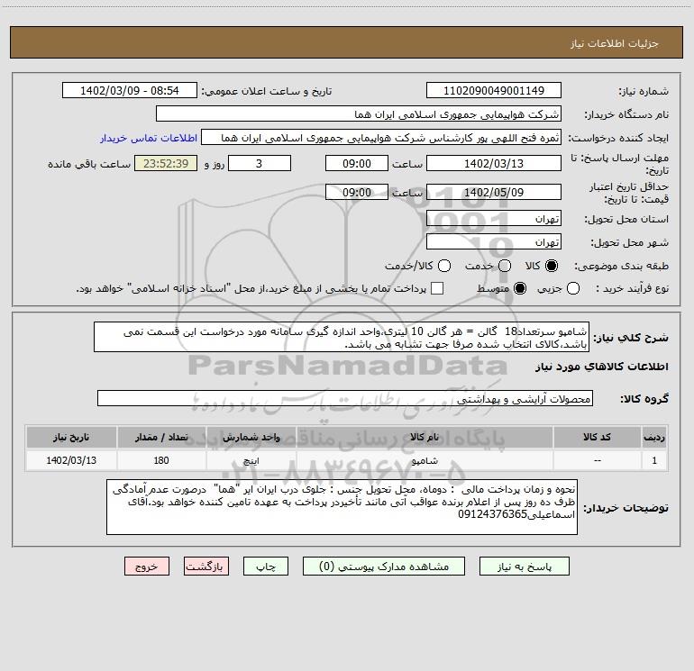 استعلام شامپو سرتعداد18 گالن = هر گالن 10 لیتری،واحد اندازه گیری سامانه مورد درخواست این قسمت نمی باشد،کالای انتخاب شده صرفا جهت تشابه می باشد., استعلام شامپو سرتعداد18 گالن = هر گالن 10 لیتری،واحد اندازه گیری سامانه مورد درخواست این قسمت نمی باشد،کالای انتخاب شده صرفا جهت تشابه می باشد.