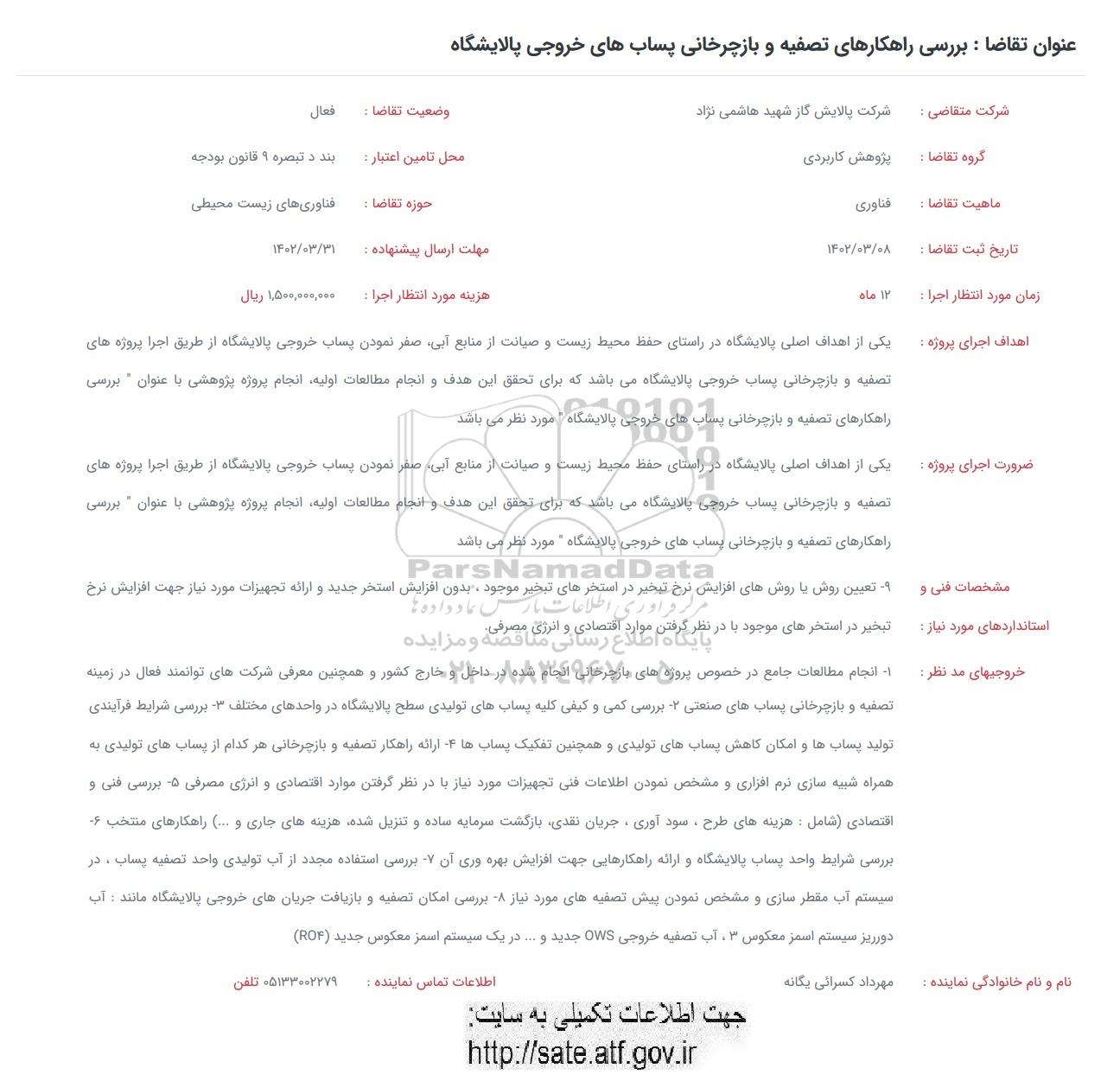 شرکت متقاضی: شرکت پالایش گاز شهید هاشمی نژاد