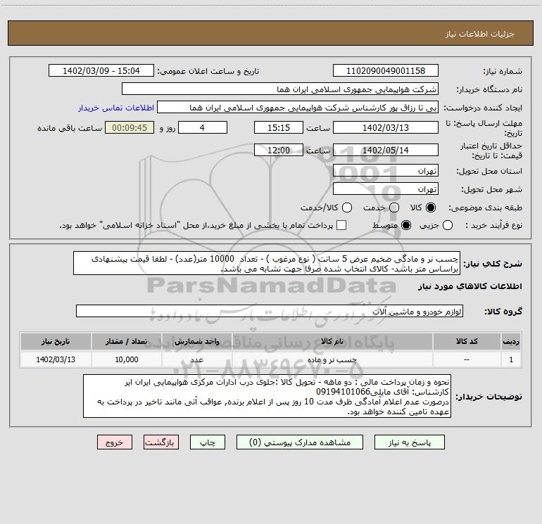 | 1 | -- | چسب نر و ماده | عدد | 10,000 | 1402/03/13 |