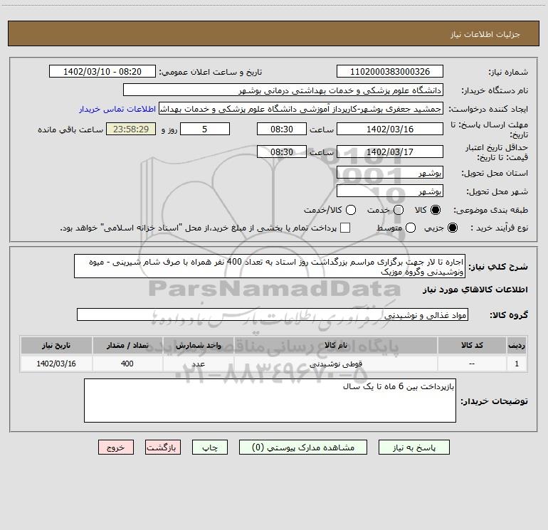 نام دستگاه خریدار:دانشگاه علوم پزشکی و خدمات بهداشتی درمانی بوشهر
