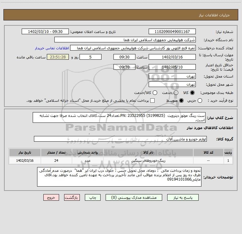 نام دستگاه خریدار:شرکت هواپیمایی جمهوری اسلامی ایران هما