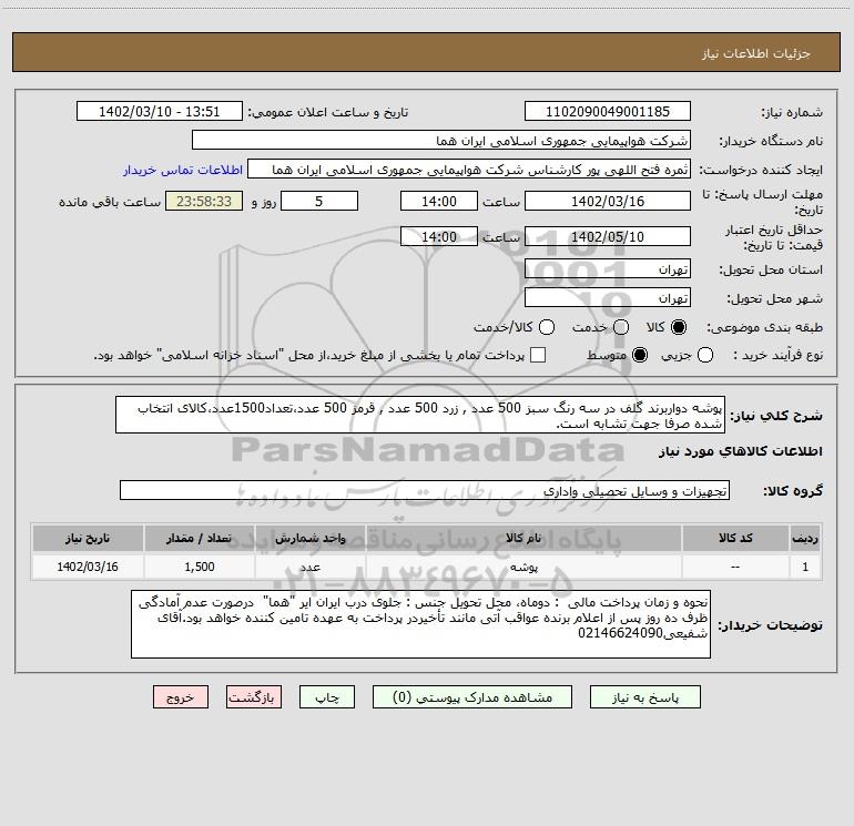 نام دستگاه خریدار:شرکت هواپیمایی جمهوری اسلامی ایران هما