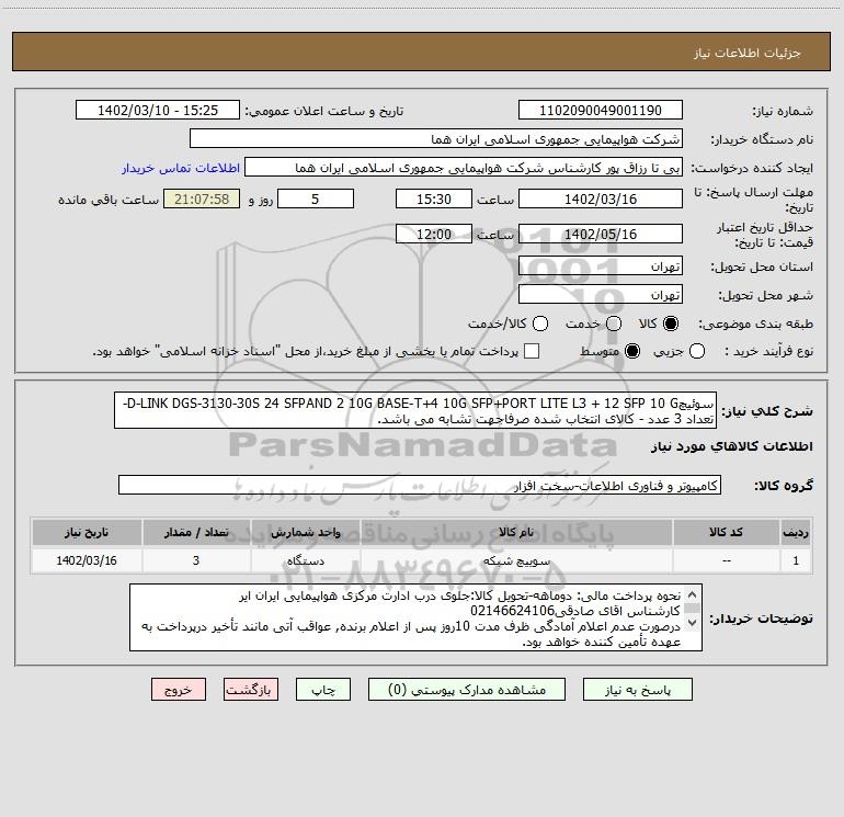 استعلام سوئیچD-LINK DGS-3130-30S 24 SFPAND 2 10G BASE-T+4 10G SFP+PORT LITE L3 + 12 SFP 10 G- تعداد 3 عدد - کالای انتخاب شده صرفاجهت تشابه می باشد., استعلام سوئیچD-LINK DGS-3130-30S 24 SFPAND 2 10G BASE-T+4 10G SFP+PORT LITE L3 + 12 SFP 10 G- تعداد 3 عدد - کالای انتخاب شده صرفاجهت تشابه می باشد.