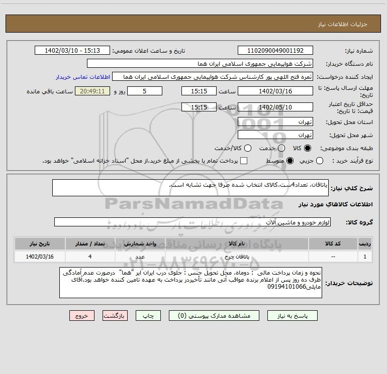 نام دستگاه خریدار:شرکت هواپیمایی جمهوری اسلامی ایران هما