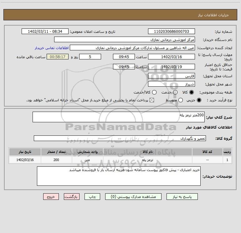 | 1 | -- | ترمز پله | متر | 200 | 1402/03/16 |