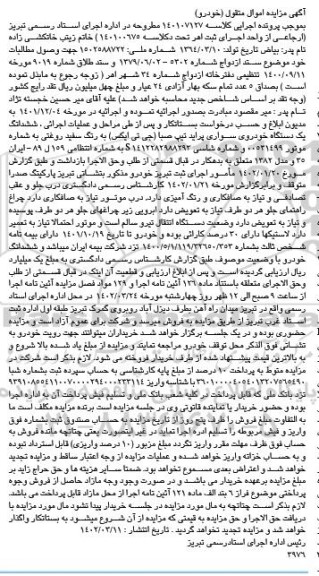 مزایده ششدانگ یک دستگاه خودرو سواری پراید تیپ صبا جی تی ایکس به رنگ سفید روغنی مدل 1382