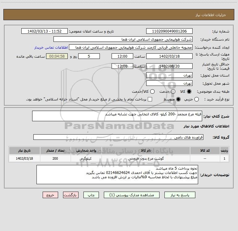 نام دستگاه خریدار:شرکت هواپیمایی جمهوری اسلامی ایران هما