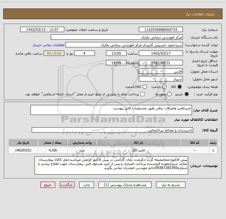 نام دستگاه خریدار:مرکز اموزشی درمانی نمازی