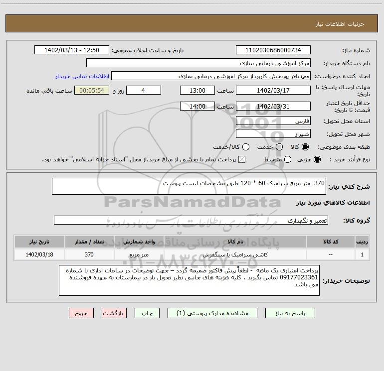 نام دستگاه خریدار:مرکز اموزشی درمانی نمازی