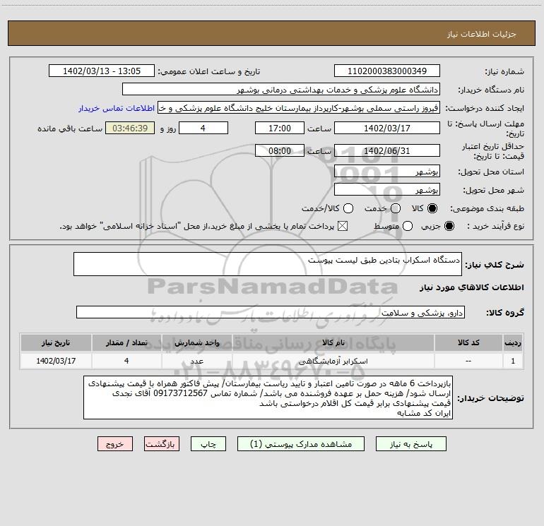 نام دستگاه خریدار:دانشگاه علوم پزشکی و خدمات بهداشتی درمانی بوشهر