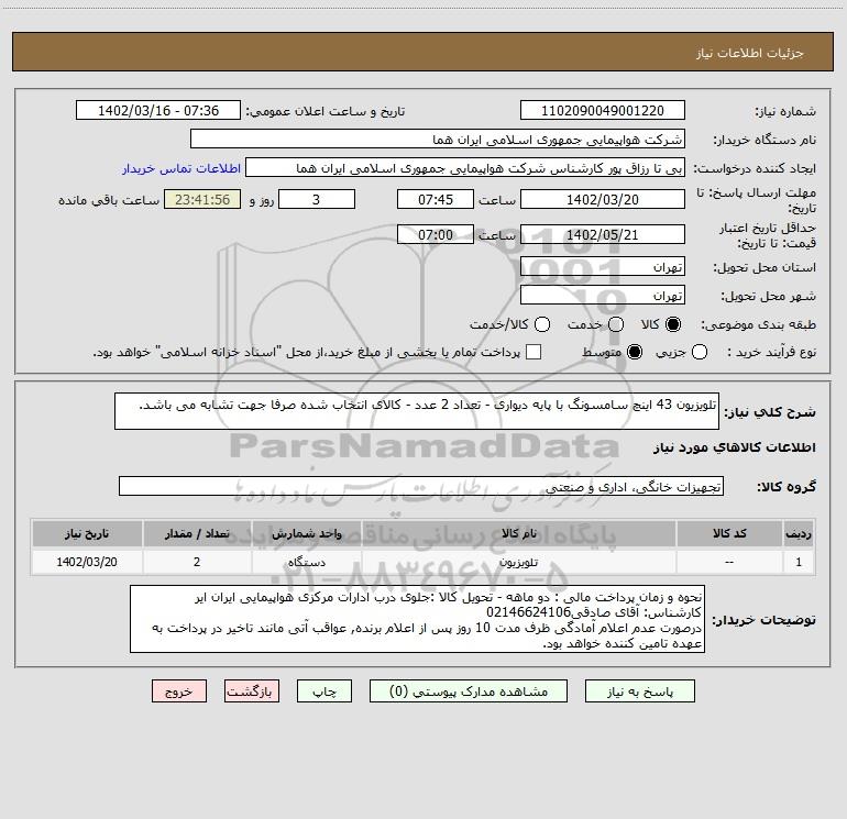 نام دستگاه خریدار:شرکت هواپیمایی جمهوری اسلامی ایران هما