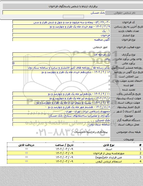 نگهداری و تعمیرات ساختمانهای ستادی بانک مسکن