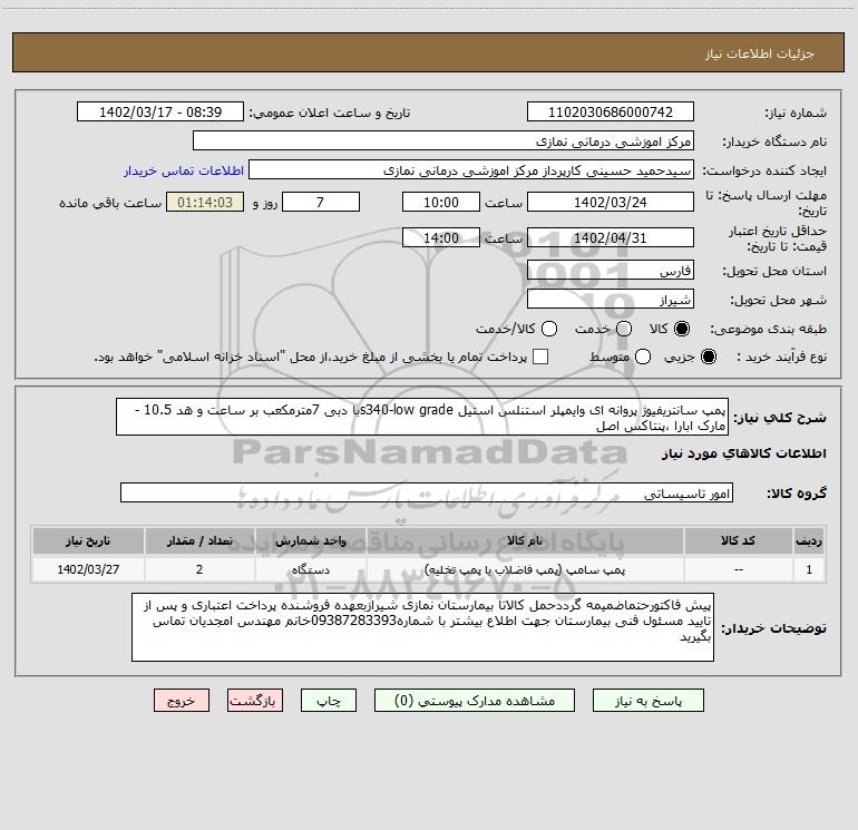 نام دستگاه خریدار:مرکز اموزشی درمانی نمازی
