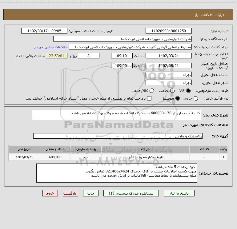 نام دستگاه خریدار:شرکت هواپیمایی جمهوری اسلامی ایران هما