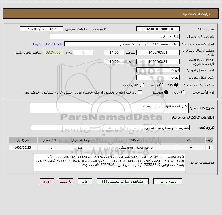 1 | -- | پروفیل توخالی مربع شکل | عدد | 1 | 1402/03/23 |