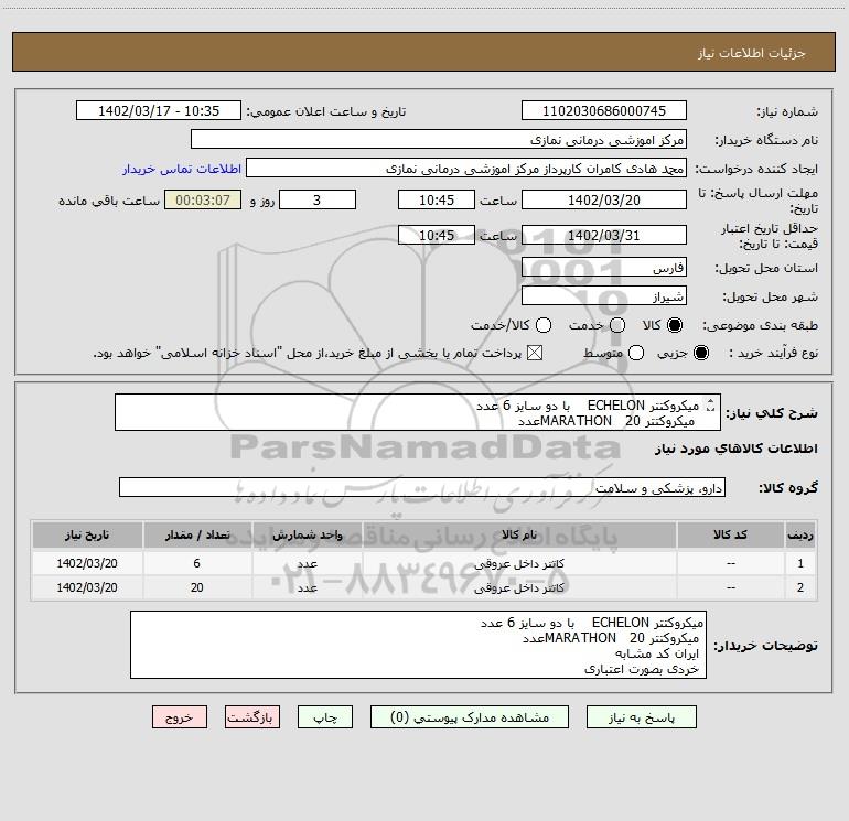 توضیحات خریدار:میکروکتتر ECHELON با دو سایز 6 عدد میکروکتتر MARATHON 20عدد ایران کد مشابه خردی بصورت اعتباری