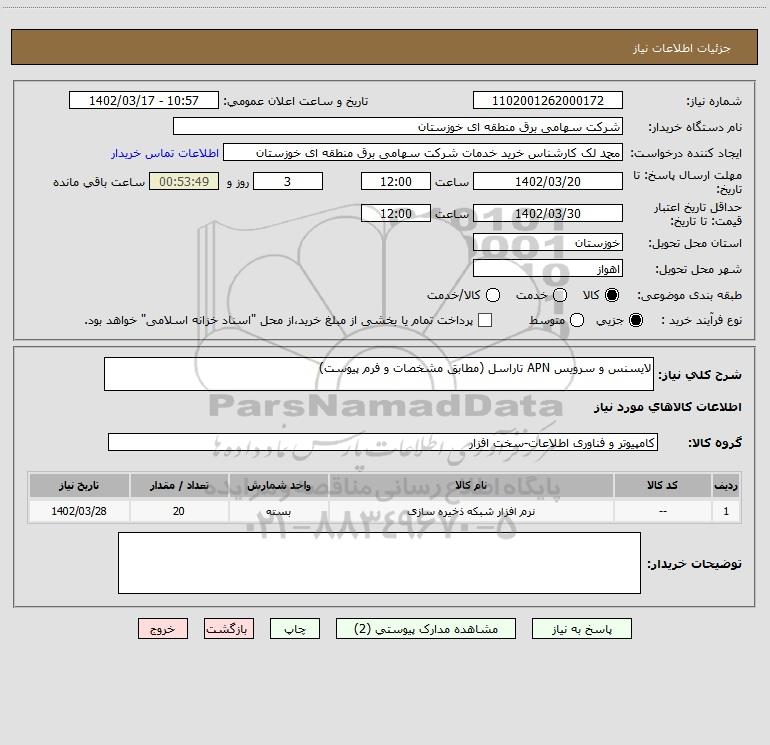 شرح کلی نیاز: لایسنس و سرویس APN تاراسل (مطابق مشخصات و فرم پیوست)