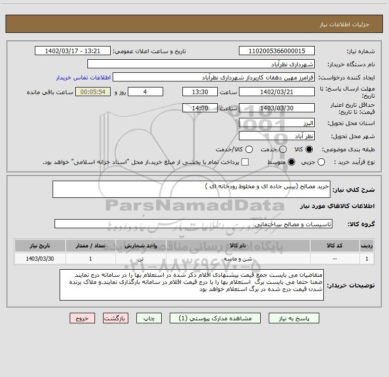 شرح کلی نیاز: خرید مصالح (بیس جاده ای و مخلوط رودخانه ای )